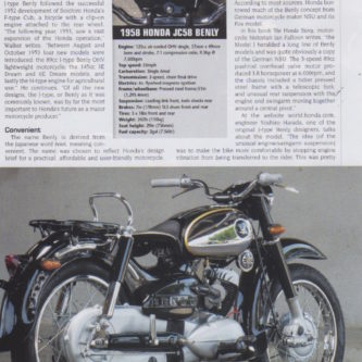 Blog, Press1958 Benly Restoration in “Motorcycle Classics” Posted on October 30, 2017November 20, 2017 by charlie 30 Oct 1958 Honda Benly Restoration Charlie’s Place in Moto Revue Classic